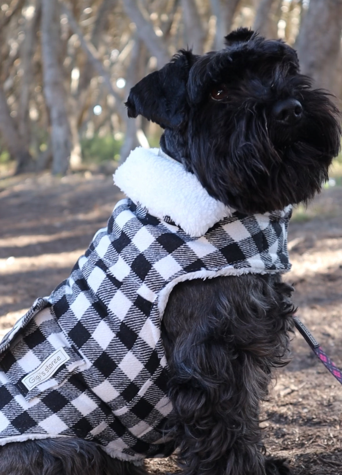 A black winter coat lined with sherpa fleece to keep your pet warm and stylish.